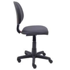 Cadeira giratória com encosto ergonômico e mecanismo back-system, permitindo regulagem de inclinação e altura do encosto. Possui assento com espuma injetada e encosto estofado costurado, oferecendo conforto e suporte lombar. Equipada com base giratória com regulagem de altura e rodízios em polipropileno.