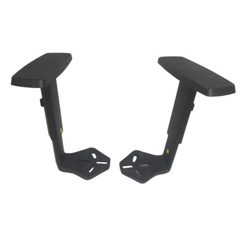 Braço com altura regulável, produzido pelo processo injeção termoplástico em copolímero polipropileno texturizado, com dois furos oblongos proporcionando regulagem horizontal entre braços. Largura na parte superior do apoia braço de 79mm; comprimento do apóia braço de 255mm; altura com 6 estágios de regulagem, através de botão lateral soft touch. Possuindo formato em “T”, conhecido como braço digitador “T” regulável.