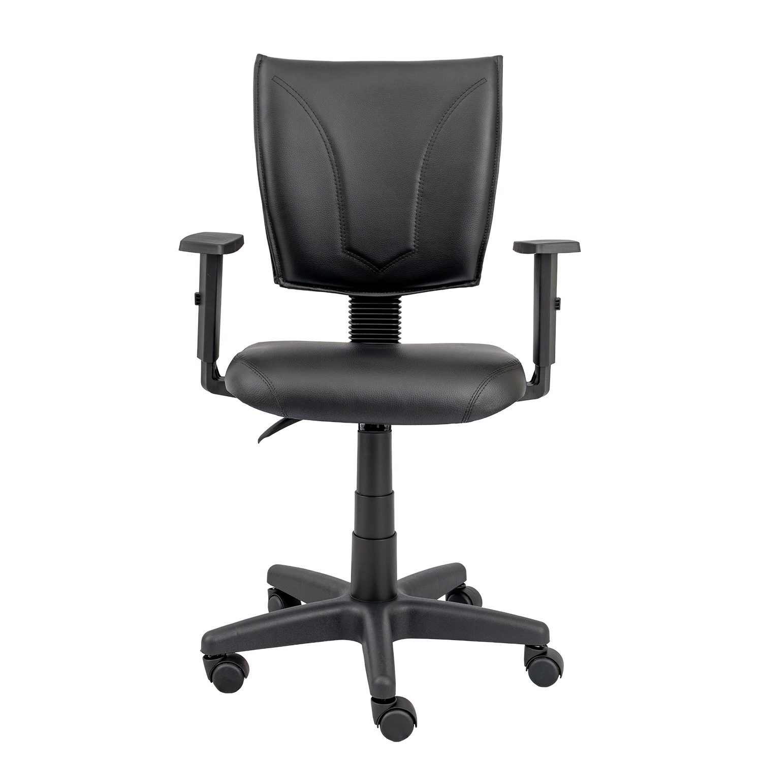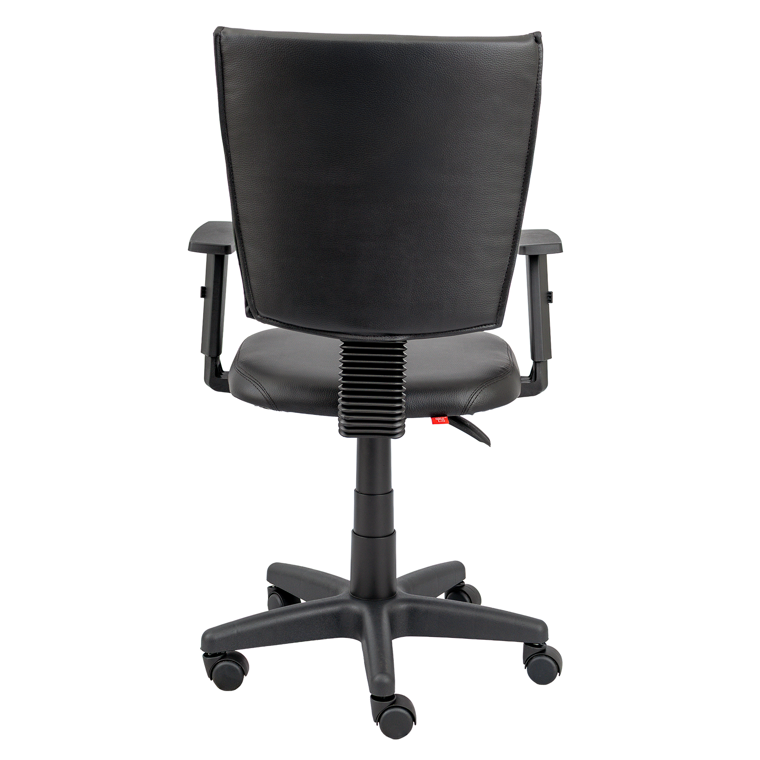 Cadeira B-One giratória com assento estofado e encosto costurado com design diferenciado. Possui regulagem de altura através de pistão a gás, base giratória com rodízios e braços reguláveis modelo Six, indicada para ambientes corporativos e escritórios.