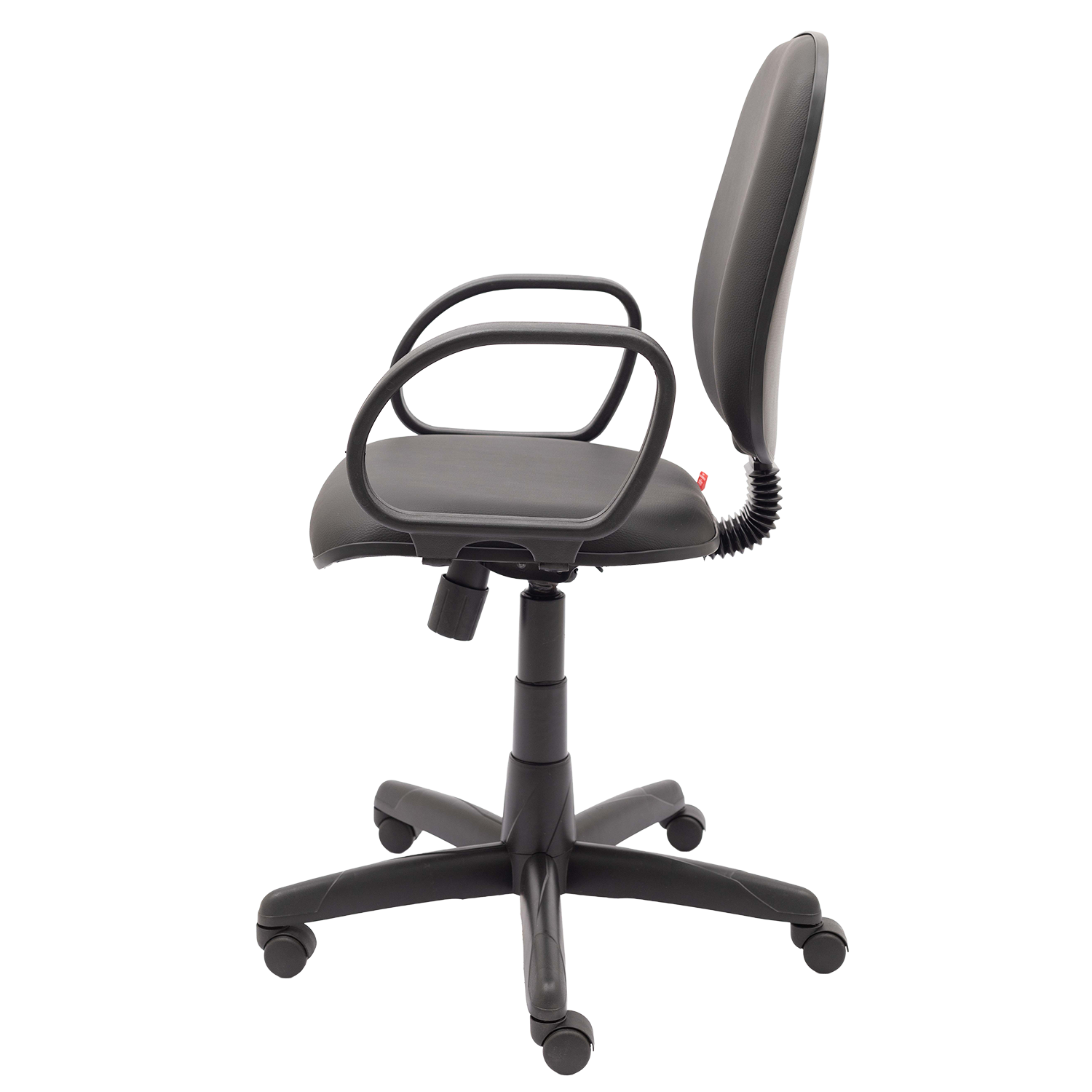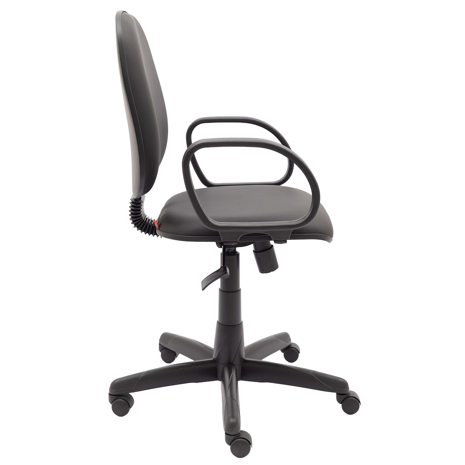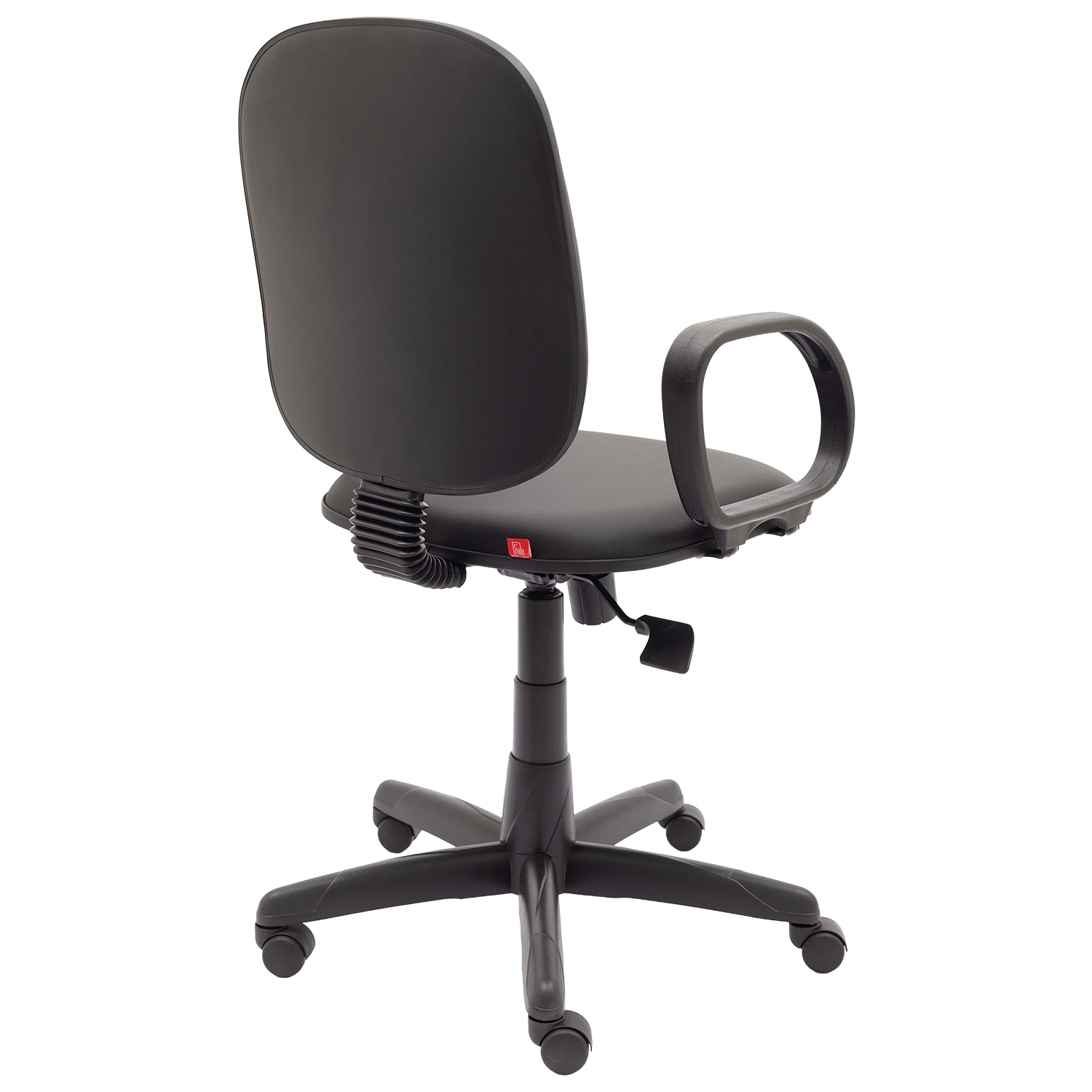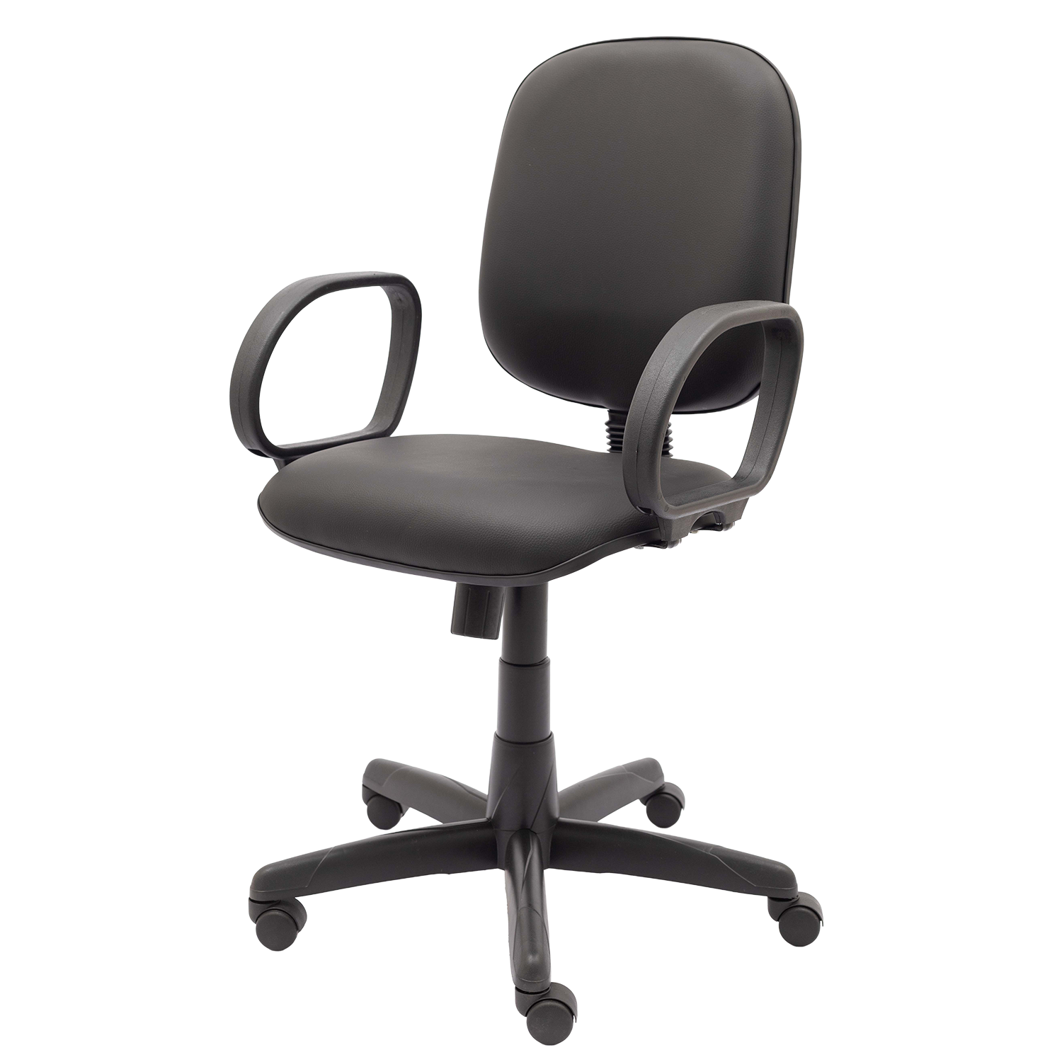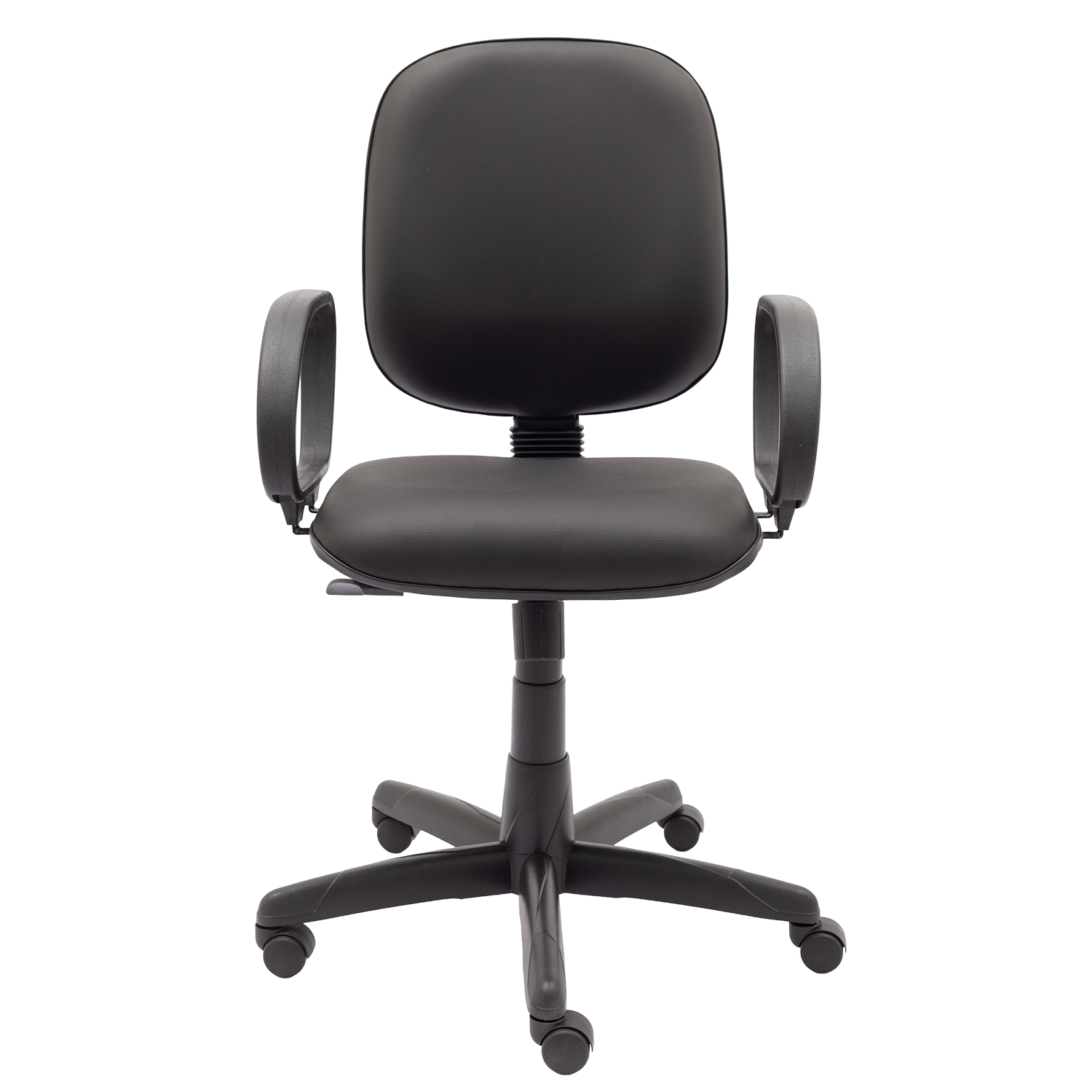 Cadeira diretor giratória com mecanismo relax, permitindo reclinamento simultâneo do assento e encosto com ajuste de tensão. Possui assento e encosto estofados com espuma injetada e apoio lombar, equipada com base giratória com regulagem de altura e braços fixos modelo Corsa.