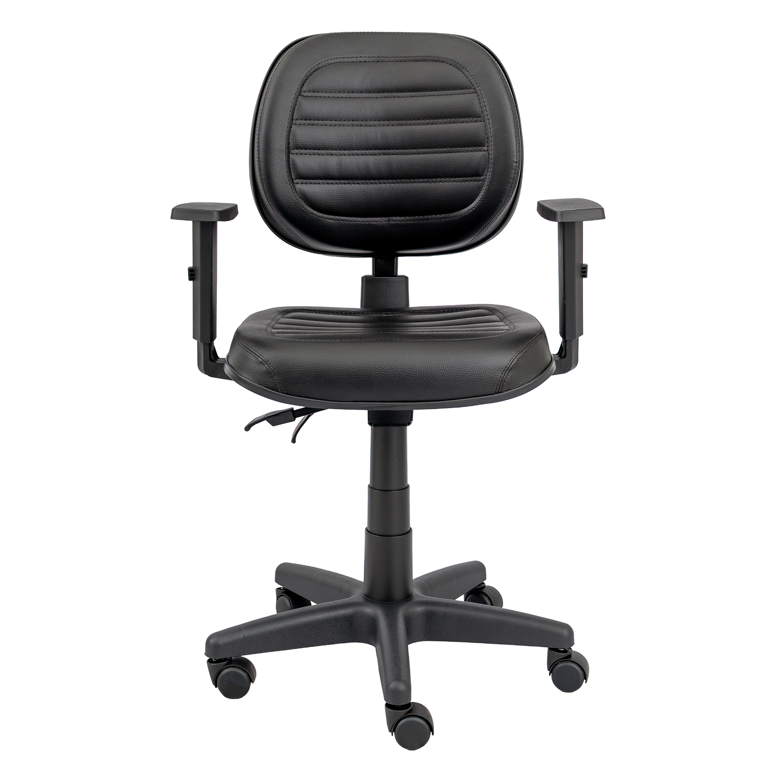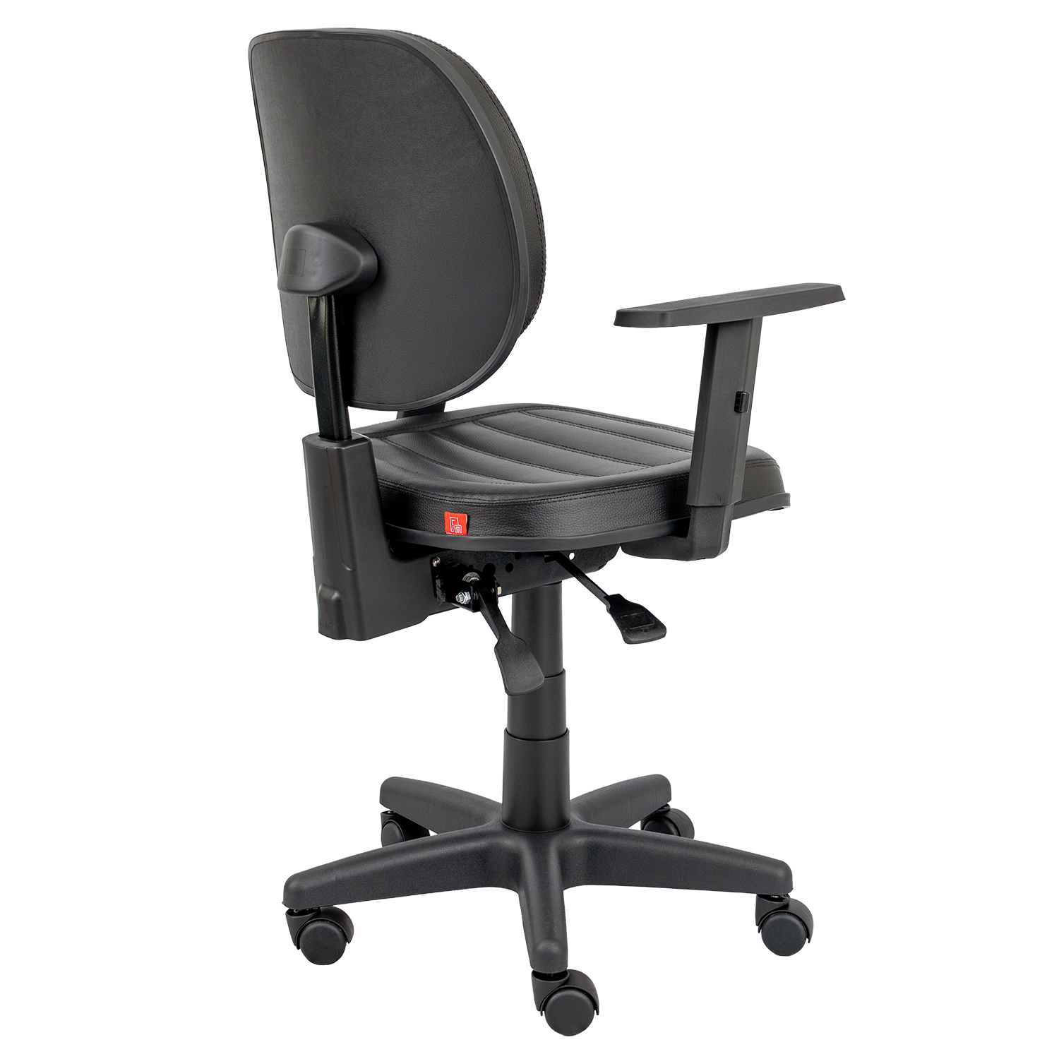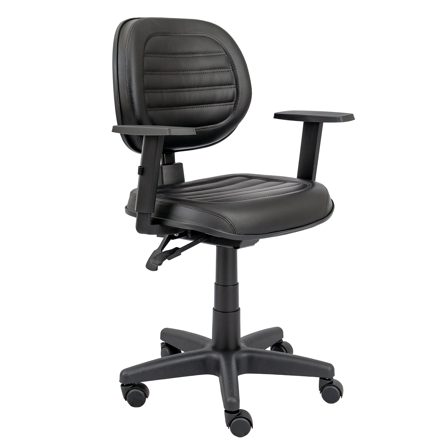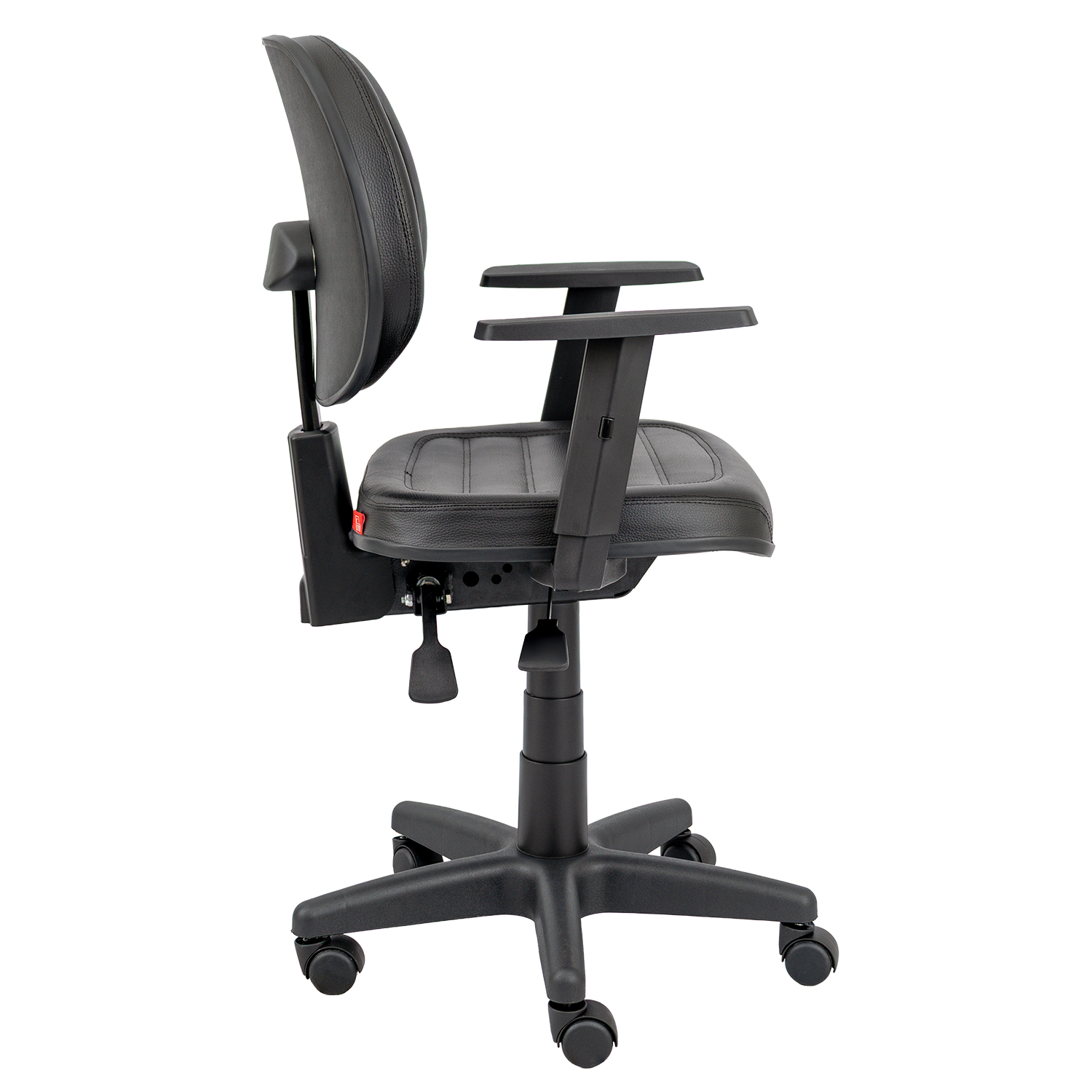 Duas alavancas: regulagem de altura do assento e inclinação do encosto
