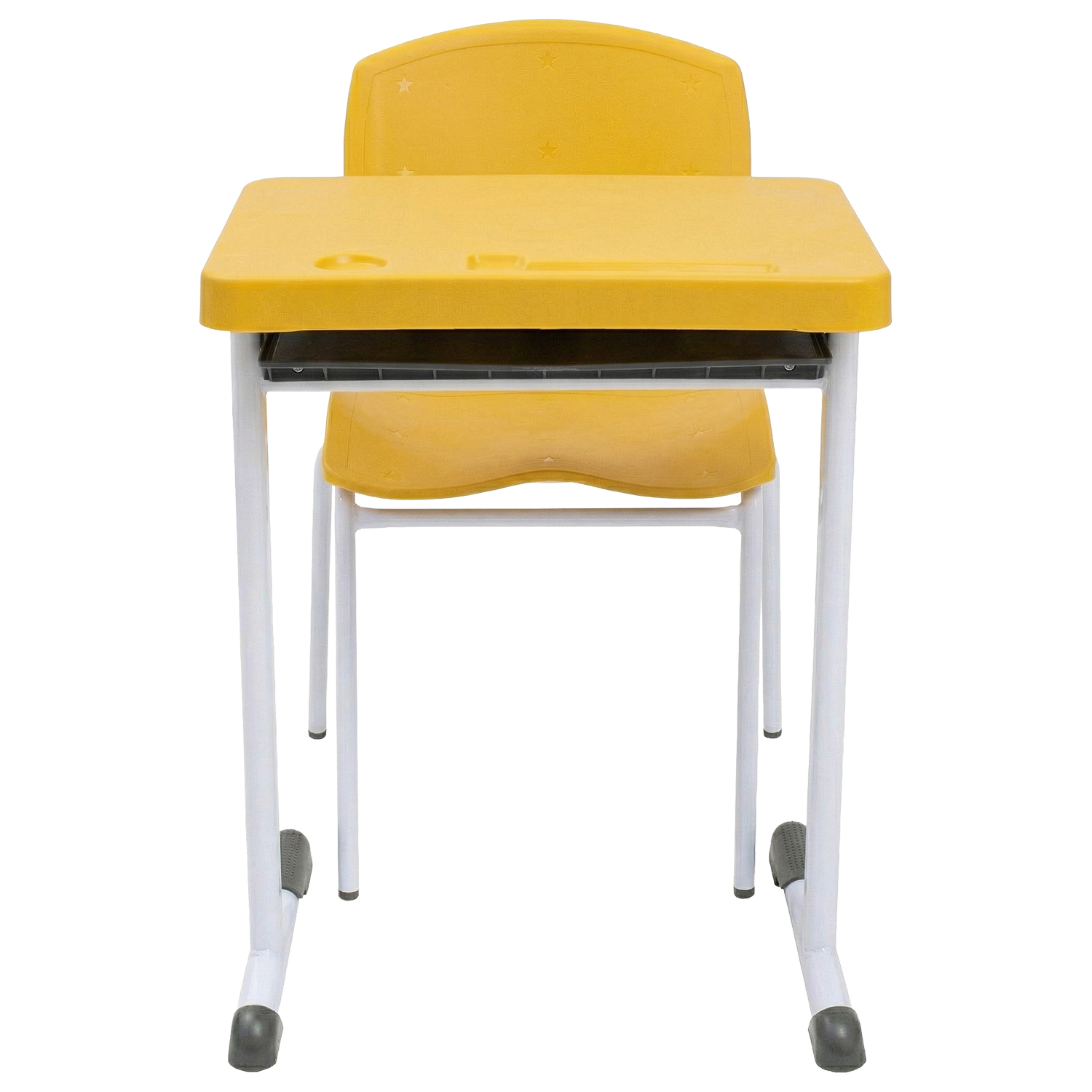 Conjunto Escolar Retangular (Mesa e Cadeira) – ADULTO (ACIMA DE 10 ANOS) – Tampo PP – Amarelo