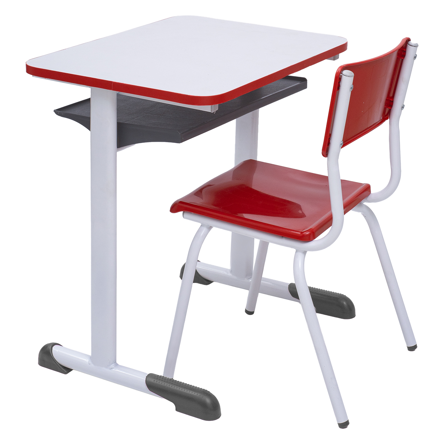 Conjunto Escolar Retangular (Mesa e Cadeira) – JUVENIL (06 a 10 ANOS) – Tampo MDF – Vermelho