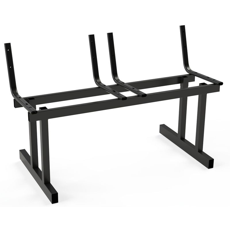 Estrutura metálica manufaturada em tubos oblongos e retangulares em aço carbono ABNT 1020. Base do encosto composta por quatro tubos oblongos 30×16 com espessura de 1,50mm. Suporte dos tubos através de duas travessas em tubos retangulares 40×20 com espessura de 0,90 mm. Suporte das pernas em 4 tubos 30×30 com espessura de 0,90mm, conformados mecanicamente. Pernas em dois tubos quadrados 30×30 com espessura de 0,90mm, pés em tubos retangulares 50×30 com espessura de 0,90mm. Sistema de encaixe tipo Cone Morse, composto por conjunto macho e fêmea conformados mecanicamente, permitindo a fixação das pernas através de encaixe cônico por interferência. O travamento ocorre por pressão mecânica entre as superfícies cônicas, proporcionando alinhamento automático das peças, alta resistência estrutural e ausência de folgas após a montagem. O sistema permite montagem e desmontagem dos pés da longarina, facilitando transporte e armazenamento do produto, mantendo a estabilidade e rigidez do conjunto durante o uso. Todas as extremidades dos tubos cobertas por sapatas e ponteiras injetadas em polipropileno (PP). Estrutura metálica soldada em solda MIG inteiriça, sem emendas, sem rugas, dobrada pelo processo de conformação mecânica por dobramento. Todos os componentes metálicos são banhados em agentes químicos (desengraxante, descarbonizante, decapante, fosfatizante, apassivador e neutralizante) para garantir longevidade do material. Superfícies metálicas pintadas em epóxi pó, eletrostática, brilhante, polimerizada em estufa, cor preta.
