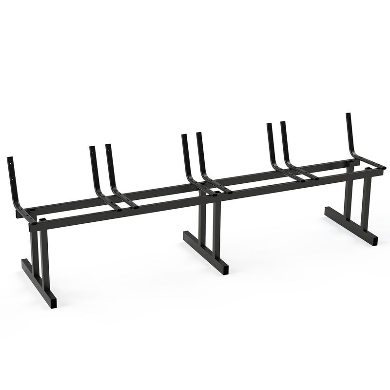 Estrutura metálica manufaturada em tubos oblongos e retangulares em aço carbono ABNT 1020. Base do encosto composta por oito tubos oblongos 30×16 com espessura de 1,50mm. Suporte dos tubos através de duas travessas em tubos retangulares 40×20 com espessura de 0,90 mm. Suporte das pernas em 4 tubos 30×30 com espessura de 0,90mm, conformados mecanicamente. 3 Pernas em dois tubos quadrados 30×30 com espessura de 0,90mm, pés em tubos retangulares 50×30 com espessura de 0,90mm. Sistema de encaixe tipo Cone Morse, composto por conjunto macho e fêmea conformados mecanicamente, permitindo a fixação das pernas através de encaixe cônico por interferência. O travamento ocorre por pressão mecânica entre as superfícies cônicas, proporcionando alinhamento automático das peças, alta resistência estrutural e ausência de folgas após a montagem. O sistema permite montagem e desmontagem dos pés da longarina, facilitando transporte e armazenamento do produto, mantendo a estabilidade e rigidez do conjunto durante o uso. Todas as extremidades dos tubos cobertas por sapatas e ponteiras injetadas em polipropileno (PP). Estrutura metálica soldada em solda MIG inteiriça, sem emendas, sem rugas, dobrada pelo processo de conformação mecânica por dobramento. Todos os componentes metálicos são banhados em agentes químicos (desengraxante, descarbonizante, decapante, fosfatizante, apassivador e neutralizante) para garantir longevidade do material. Superfícies metálicas pintadas em epóxi pó, eletrostática, brilhante, polimerizada em estufa, cor preta.