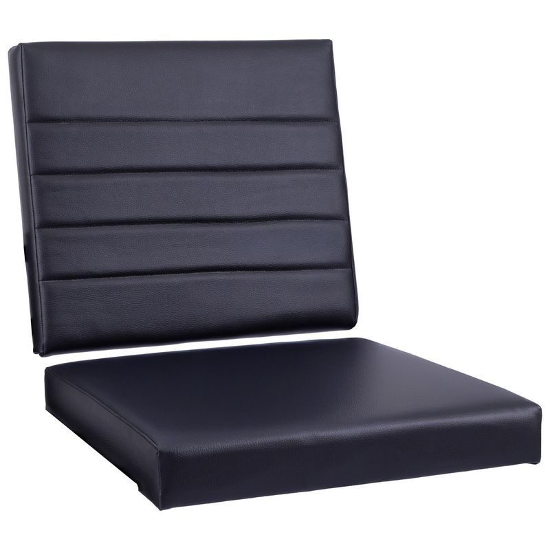 Conjunto assento-encosto confeccionado em oito lâminas de madeira provenientes de florestas renováveis (Pinus/Eucalipto), lâminas com alto grau de dureza, espessura de 1,5mm por lâmina, moldadas anatomicamente a quente. Espuma flexível de poliuretano injetada anatomicamente, em média com 45mm de espessura para encosto e espessura do assento de 55mm, com alta densidade (45 a 55 Kg/m³), alto alongamento de ruptura, baixa fadiga dinâmica e baixa deformação permanente. Revestimento feito em courvin (couro sintético produzido em laminado composto de PVC), disponível com costura reta no encosto. Dimensões do assento: 470 mm (largura) e 450 mm (profundidade), encosto: 470 mm (largura) e 410 mm (altura). Sistema de fixação do conjunto assento-encosto a base através de parafusos sextavados com 1/4’’ de diâmetro parafusado a porcas garra em aço com acabamento zincado, fixadas a estrutura do assento-encosto.